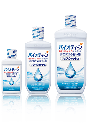 渇きがちなお口の方のことを考えて処方されたバイオティーン マウスウォッシュ。お口にうるおい感を与え、口腔内を浄化、口臭などの不快感を防ぎます。